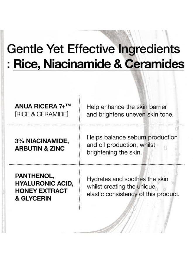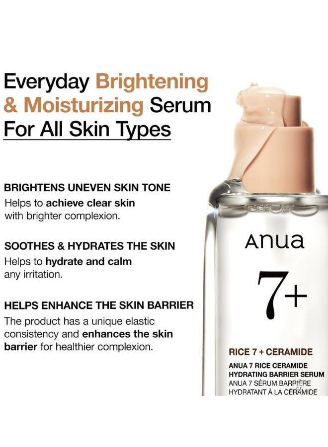 Anua 7 Rice Ceramide Hydrating Barrier Serum is a must-have addition to your skincare routine. This lightweight, fast-absorbing serum is enriched with the power of rice ceramides, which are known for their ability to deeply hydrate and strengthen the skin’s natural barrier. The formula is designed to lock in moisture, leaving your skin feeling soft, smooth, and protected against environmental stressors. Highlights Formulated with ANUA RICERA 7+ and Arbutin, this serum nourishes and hydrates the skin whilst brightening dull skin to achieve even skin tone. A blend of Honey Extract, Rice Extract and Hyaluronic Acid creates a unique elastic yet lightweight texture of this serum. Further enriched with Alpha-Arbutin to help fade the appearance of acne scar and post-blemish redness, making skin more toned. Perfect for all skin types, especially those with dry or sensitive skin.