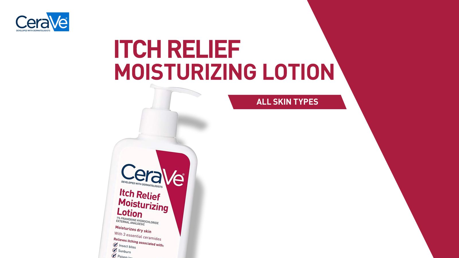 CeraVe Anti Itch Moisturizing Lotion with Pramoxine Hydrochloride, Relieves Itch with Minor Skin Irritations, Sunburn Relief, Bug Bites, 16 Ounces About this item [ CERAVE ANTI ITCH LOTION ] Temporarily relieves itching associated with insect bites, sunburn, poison ivy while moisturizing dry skin. Lightweight texture that is absorbed quickly for softened skin with non-greasy feel. [ CLINICALLY TESTED ] Provides relief within two minutes and lasts up to 8 hours. 100 percent of people experienced relief for even their most severe itch; clinical study done on 34 subjects. Individual results may vary. [ SOOTHING INGREDIENTS ] Formulated with 1% Pramoxine Hydrochloride for fast-acting, long-lasting temporary itch-relief, Niacinamide to help calm skin, and Hyaluronic Acid to help retain skin’s natural moisture. [ 3 ESSENTIAL CERAMIDES ] Ceramides are found naturally in the skin and make up 50% of the lipids in the skin barrier. All CeraVe products are formulated with three essential ceramides (1, 3, 6-II) to help restore and maintain the skin’s natural barrier [ DEVELOPED WITH DERMATOLOGISTS ] Suitable for use on face; body; and hands to temporarily relieve itching. Holds National Eczema Association (NEA) Seal of Acceptance. Fragrance free; steroid-free; and non-comedogenic. FSA Eligible & HSA Eligible