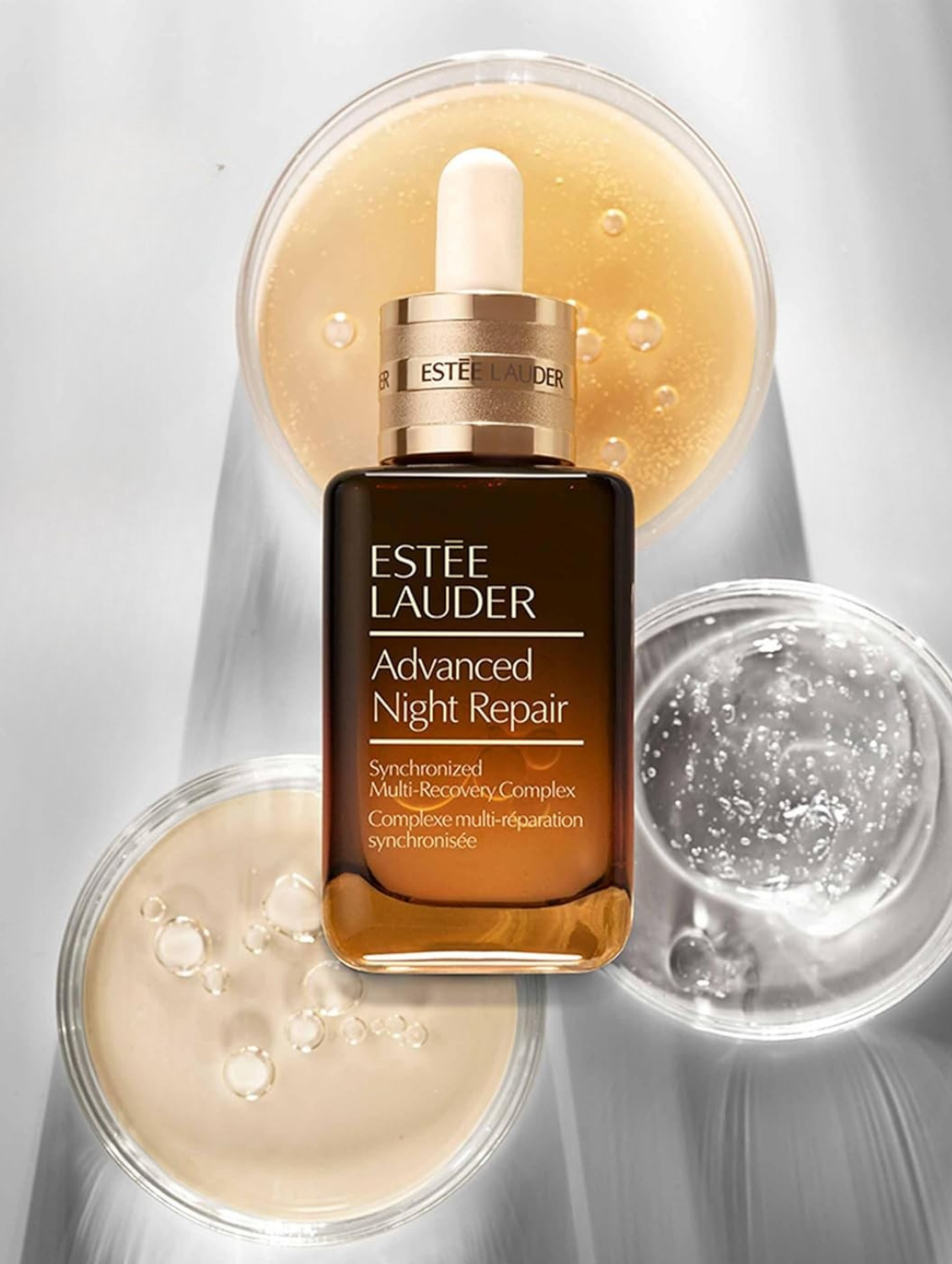 Estée Lauder Advanced Night Repair Face Serum Synchronized Multi-Recovery Complex with Hyaluronic Acid & Peptides | Anti Aging & Hydrating This deep- and fast-penetrating travel-size serum, with our exclusive 1-in-60-million Night Peptide, ignites 7 night renewal actions to visibly reduce multiple signs of aging. Repairs. Renews. Hydrates. Wake up radiant. Skin looks smoother & less lined, healthier—more radiant & even toned. For all ages, all skintones, all skintypes. AM & PM: Apply on clean skin before your moisturizer. Smooth in gently all over face and throat. Apply a full dropper to the palm of hand. Massage onto face in heart shape using all fingers of both hands.