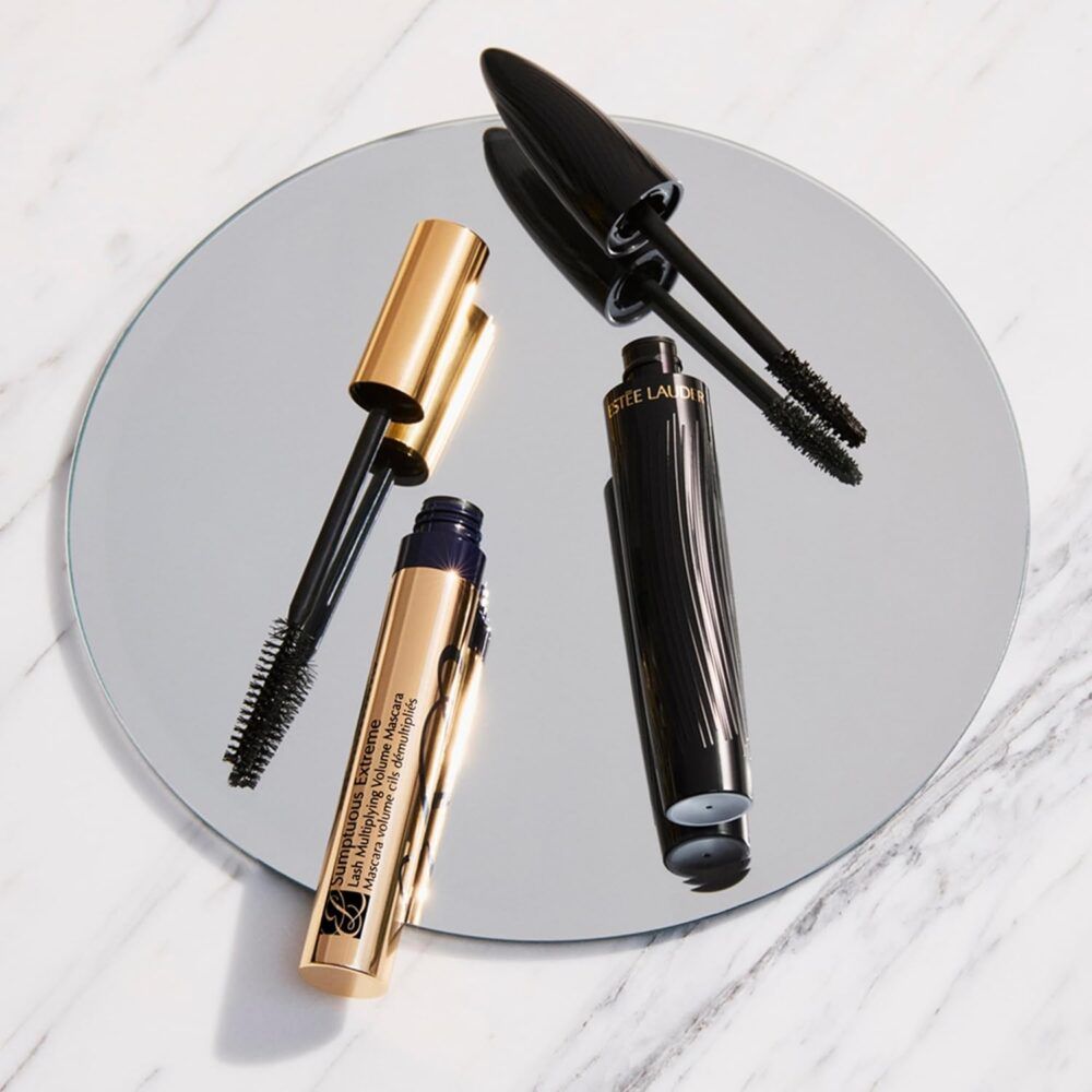 Estée Lauder Sumptuous Extreme Lash Multiplying Volume and Length Mascara | 01 Extreme Black Sumptuous Extreme Mascara creates outrageous volume, lift and curves for an audacious, false-lash effect. Eyes look brighter, wider, more seductive. Prismatic pearls intensify pigment and luster. Lashes seem to multiply, magnify, grow to extremes. Starting at natural lashline, wiggle brush from base to tip of lashes. Repeat to build for extra volume.