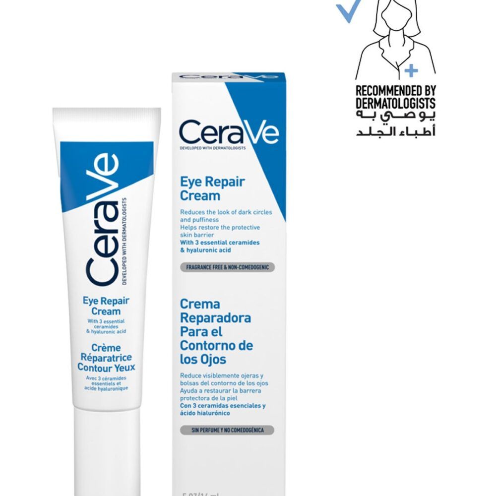 CeraVe Eye Repair cream aims to deliver hydration and restore the skin’s natural barrier. The CeraVe Eye Repair Cream is ophthalmologist-tested, hence making it safe to use around the eyes. CeraVe Eye Repair Cream features a Marine & Botanical Complex to help brighten the entire eye area. The non-greasy, fast-absorbing, fragrance free CeraVe Eye Repair is suitable for all skin types. The eye cream has the three essential ceramides, hyaluronic acid, and niacinamide. Being patented MVE Delivery Technology aids in releasing moisture for prolonged skin hydration. Highlights • Reduce the appearance of dark circles and eye puffiness • Non-greasy, fast-absorbing formula • Suitable for all skin types • Non-comedogenic, fragrance-free • Ophthalmologist-tested for safety and allergy-tested • Developed with dermatologists • MVE Technology: Continually releases moisturizing ingredients for all-day hydration • Hyaluronic acid: Helps retain the skin’s natural moisture • Niacinamide: Helps calm your skin