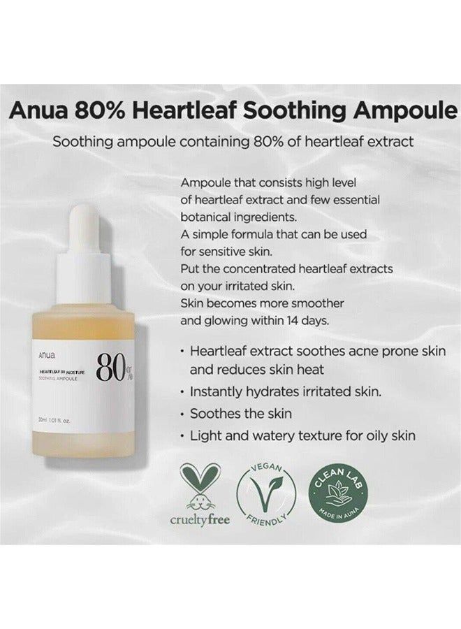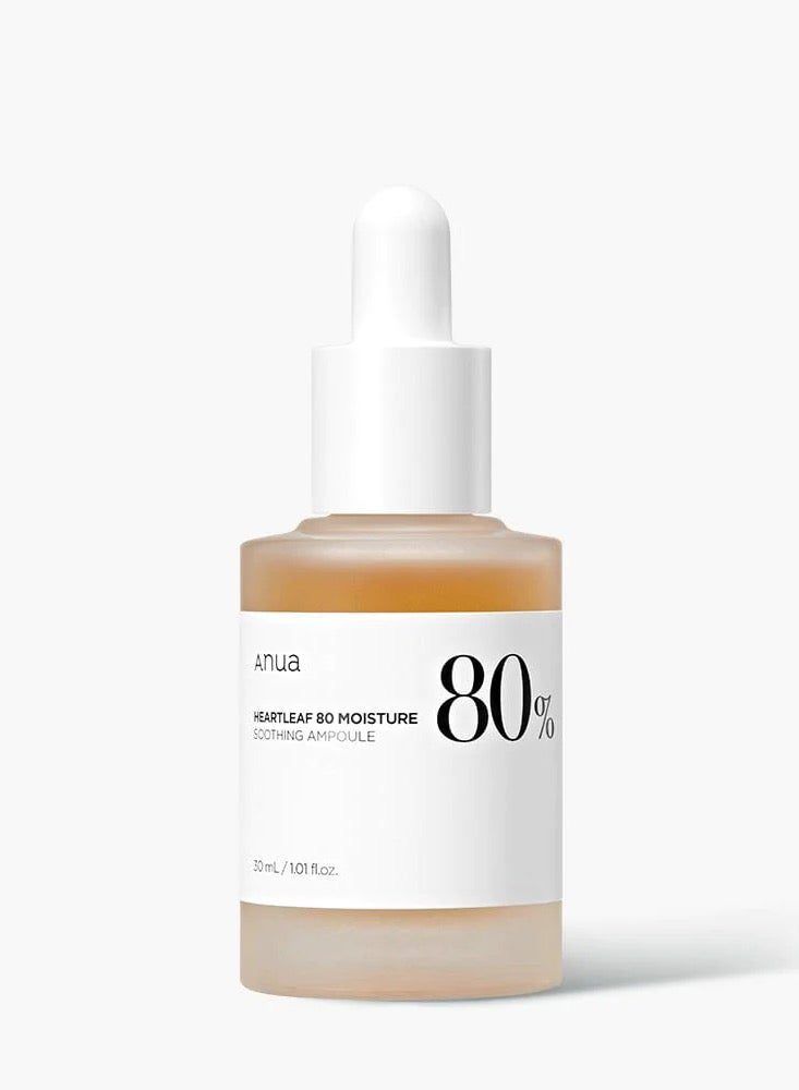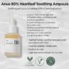 Highlights Heartleaf 80% Soothing Ampoule. Tight but not greasy moisturizing texture Excellent Skin Trouble Care. Heartleaf is very effective for calming skin troubles. Optimized Composition for Skin. We honestly disclose all ingredients by removing what is unnecessary and adding only what is needed. Heartleaf 80% Soothing Ampoule has no irritation potential to the skin. The primary skin irritation sment through 24-hr skin patch tests confirmed there is no irritation. -Korean Dermatology Research Institute It’s only about nature and nothing else. The true power of heartleaf. Anua, a relaxing time for the skin and an awakening time for myself