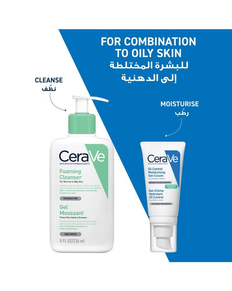 Developed with dermatologists, CeraVe Oil Control Moisturising Gel-Cream, features an oil-absorbing technology that helps absorb excess oil and rebalances the skin, leaving it neither too oily nor too dry. The non-greasy formula feels refreshing upon application and quickly absorbs into the skin with a matte finish. It contains beneficial ingredients (like ceramides, hyaluronic acid, and niacinamide) and is formulated with MVE Delivery Technology to supply all-day hydration while helping to restore the skin’s protective barrier. Highlights Hyaluronic acid: Helps retain the skin’s natural moisture Non-Comedogenic: Won’t clog pores Fragrance-Free: To avoid fragrance irritation Oil-Absorbing Technology: Silica and other powders help absorb excess oil Rebalances Oily Skin: Leaves skin neither too oily nor too dry