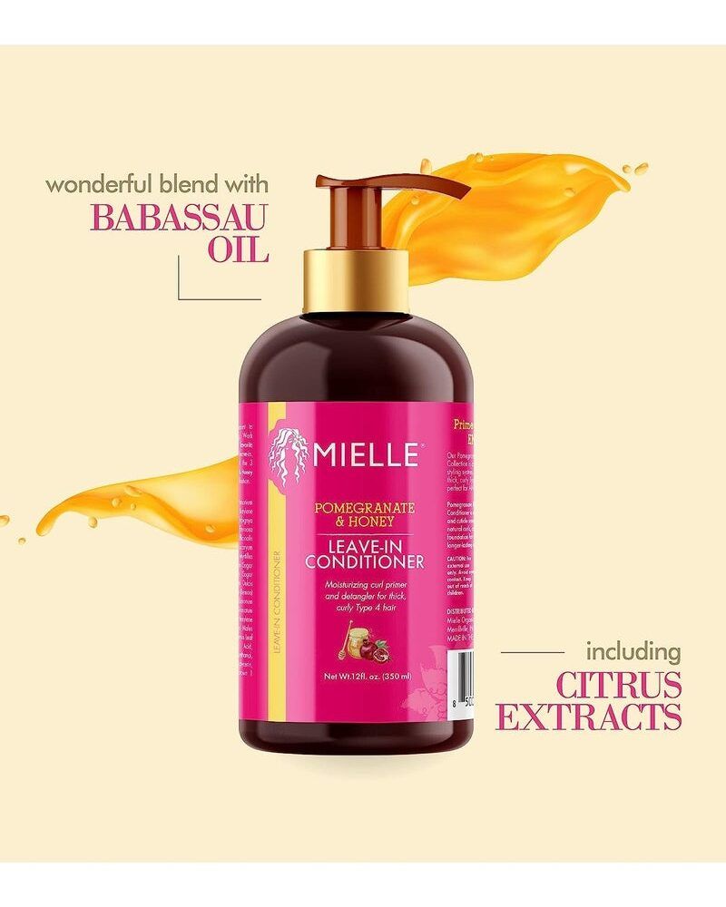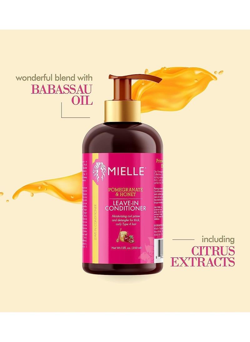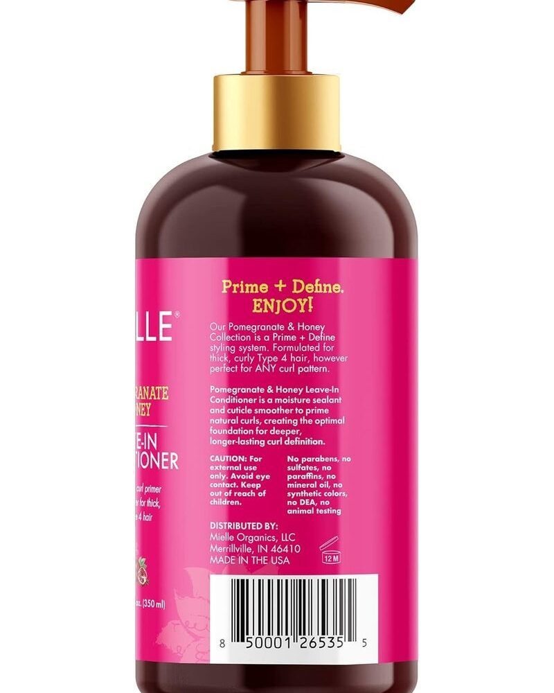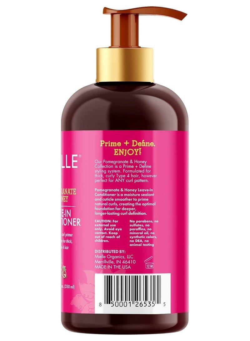 Start your hair care routine the right way with Mielle’s Pomegranate & Honey Leave-In Conditioner. With a blend of natural ingredients like babassu oil and citrus extracts, this nourishing formula adds penetrating moisture to every hair strand and seals it in for lasting hydration. It also provides natural shine, prevents frizz, and makes detangling easier without weighing down your hair. Simply apply after conditioning, work through to the tips, and style however you like! Highlights A lightweight Type 4 hair product you’ll love Smells good and feels great Made for thick, curly hair No protein.